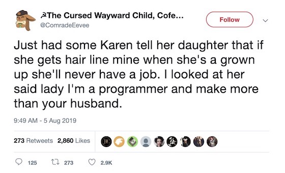 Next time someone criticizes you because of your hair or style, you can kick their ass by succeeding in only ways they can imagine. Which is exactly what this fantastic tweet by @ComradEeevee teaches us.