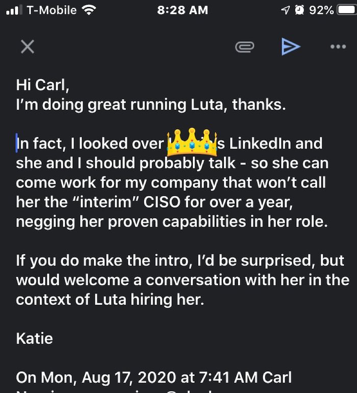 In keeping with last week's spicy tweets theme, @k8em0 dropped a virtual cluster bomb on this hapless recruiter. You really have to see the full tweet.