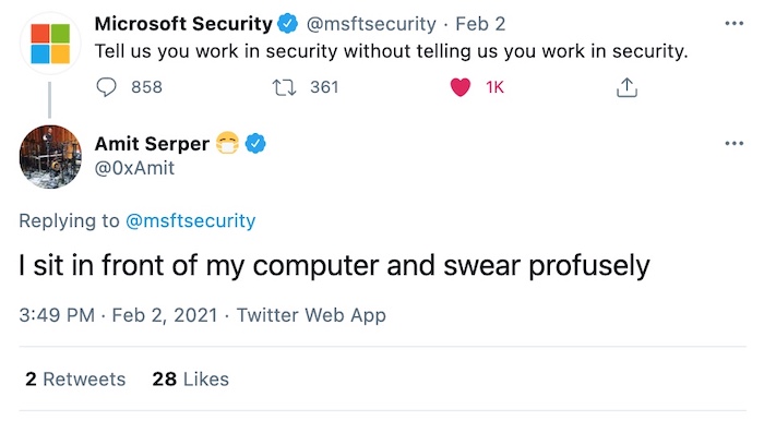 There are some hilarious responses to this @msftsecurity thread. (Same, @0Axmit, same.