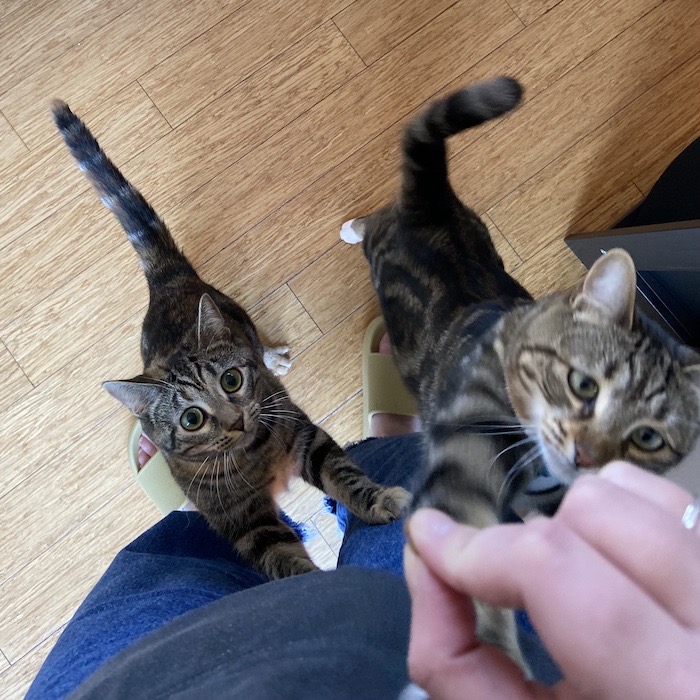 This week's two-for-one cybercats are Avery and Lucie, who as you can see here have been completely hijacked by what cat owners call a "treat attack." Don't worry, the side-effects are extremely tasty but short-lived. A big thanks to @devonjmalloy for the submission!