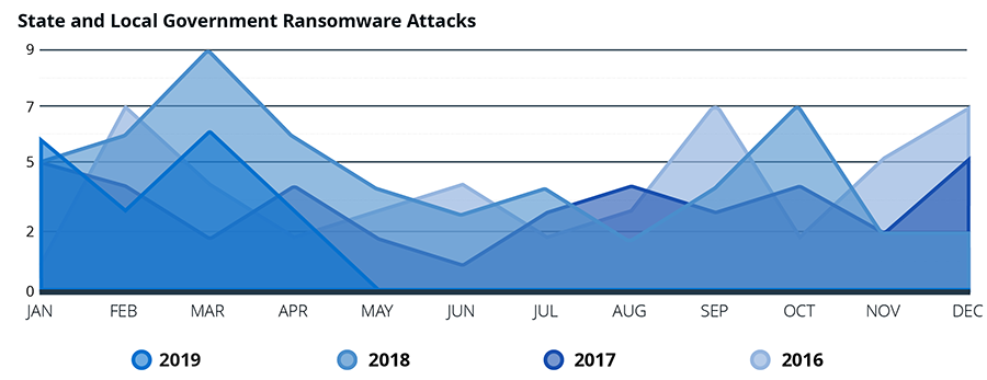 Recorded Future: A new report out this week gives an insight into the state-of-the-union of ransomware in government. The research shows there were 53 ransomware attacks in 2018, and close to half that for the first four months of 2019, indicating an upward trend. SamSam, Ryuk, WannaCry and CryptoLocker seem to be the biggest hitters in local and state governments, according to the report.
