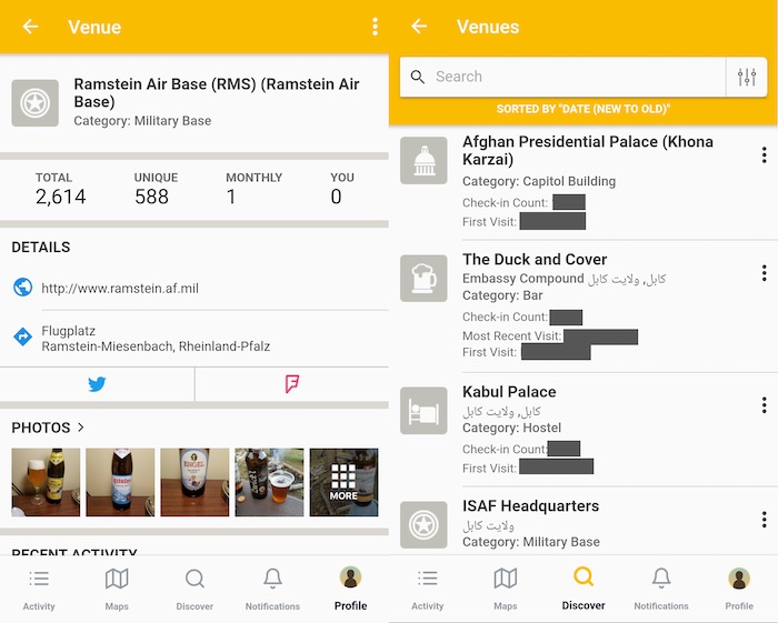 Using the Untappd beer app to trace military and intelligence personnel