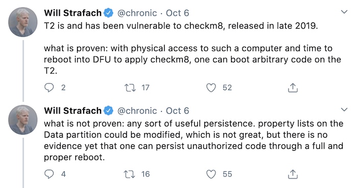 Wired ($): Just what you want to hear: an unfixable flaw in your iPhone's security chip. A new vulnerability, discovered by jailbreaking crew Pangu, can bypass Apple's T2 security chip and gain deep access to the operating system. The T2 is used as a secrets store for your Touch ID and Activation Lock features. But because the bug is in the low-level and unchangeable firmware of the chip, it's not believed to be fixable. (@chronic has a great explainer tweet thread on this.) It's not a "full-blown security crisis," as Wired explains. There are limitations to the jailbreak, and requires physical access to a device, and the jailbreak isn't persistent following a reboot.